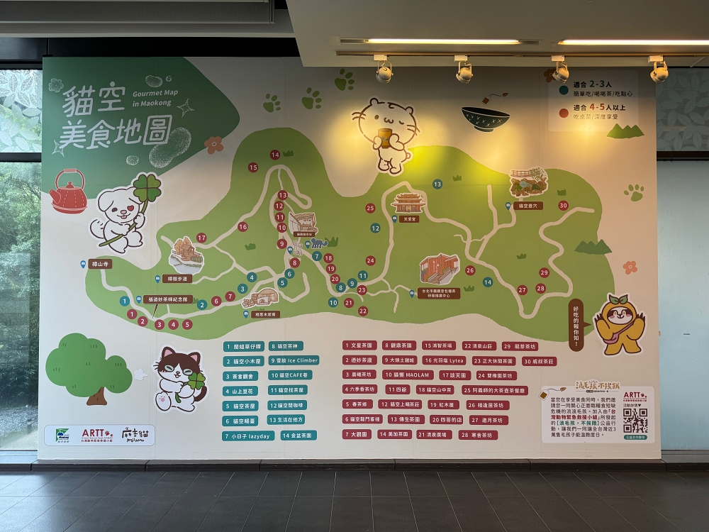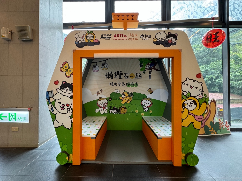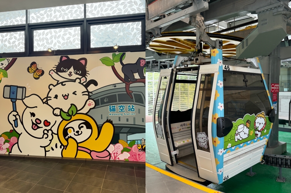 即日起來到貓空纜車總站,在玻璃窗、電梯口等處都能看到共ㄉㄨ拉、麻吉貓、EMMA、小牛等動物好朋友的可愛身影,還有纜車彩繪車廂造景能拍照打卡,旅客更可透過貓空地圖牆得知美食資訊。
