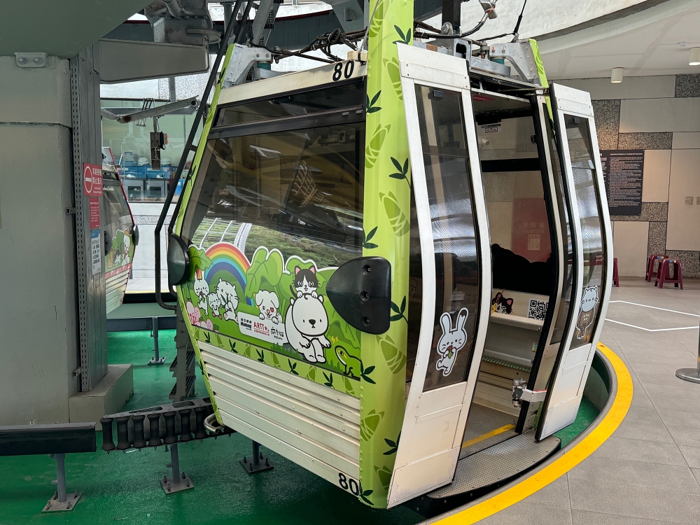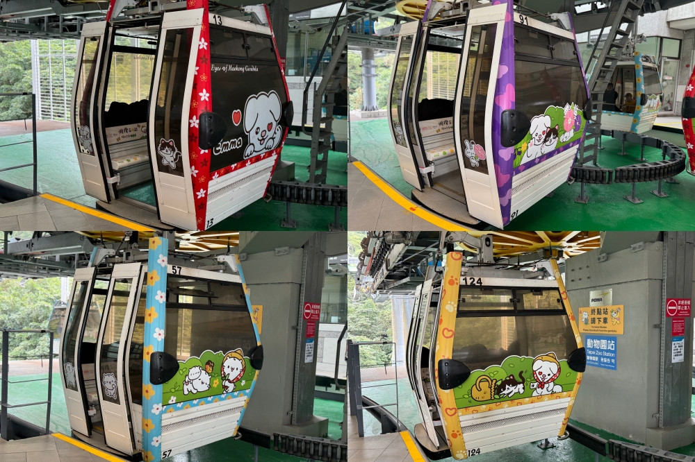 貓空纜車在剪纜工程期間同步換上新裝,讓吉祥物樹懶「共ㄉㄨ拉」與「麻吉貓」,以及 ARTT 台灣動物緊急救援小組的「EMMA」與「小牛」現身車廂。全新彩繪車廂共有紅、黃、藍、綠、紫等色,不只外觀,連內部座椅都更換圖案,掃描 QR-Code 還能了解每個救援真實故事。