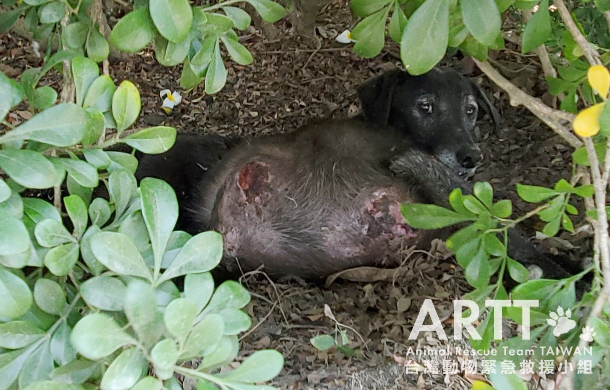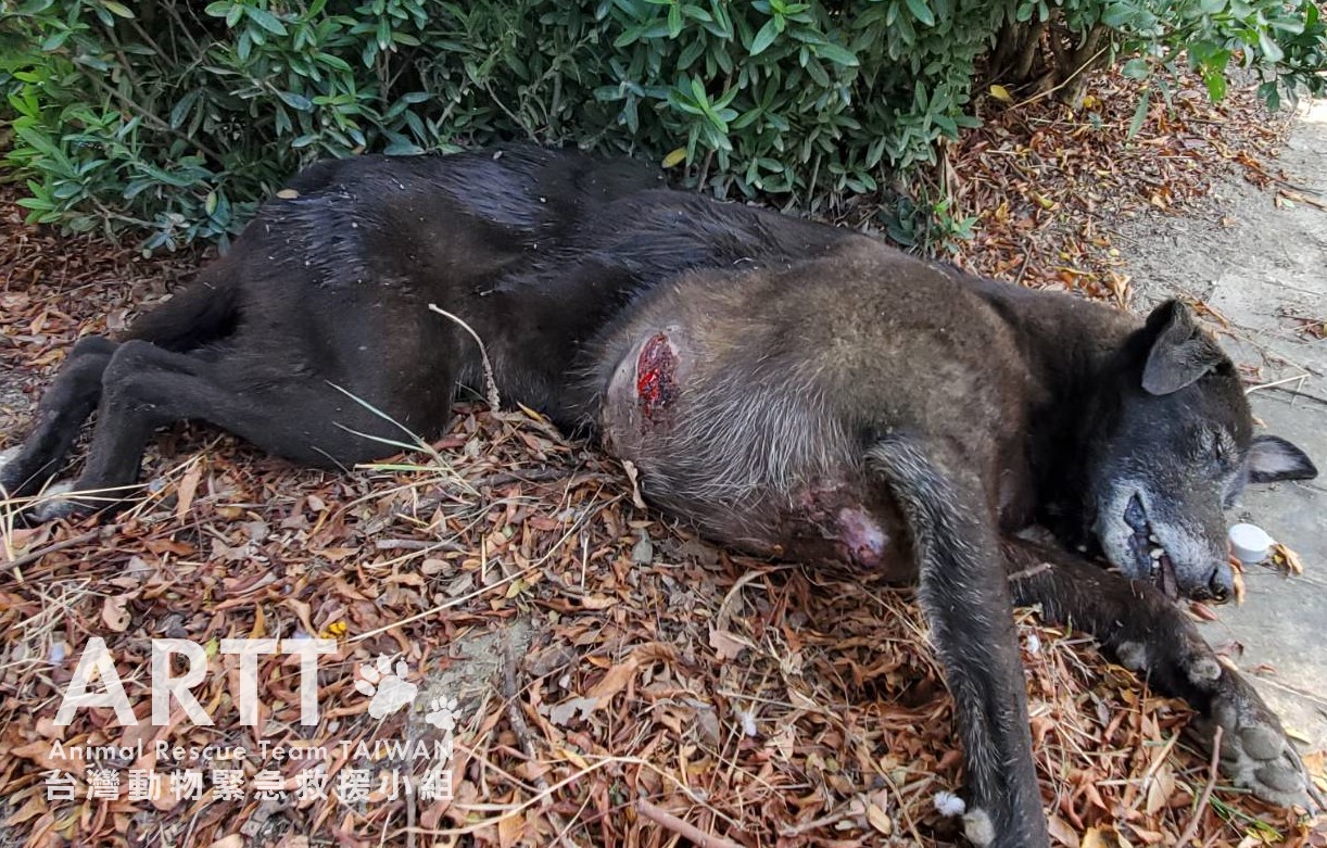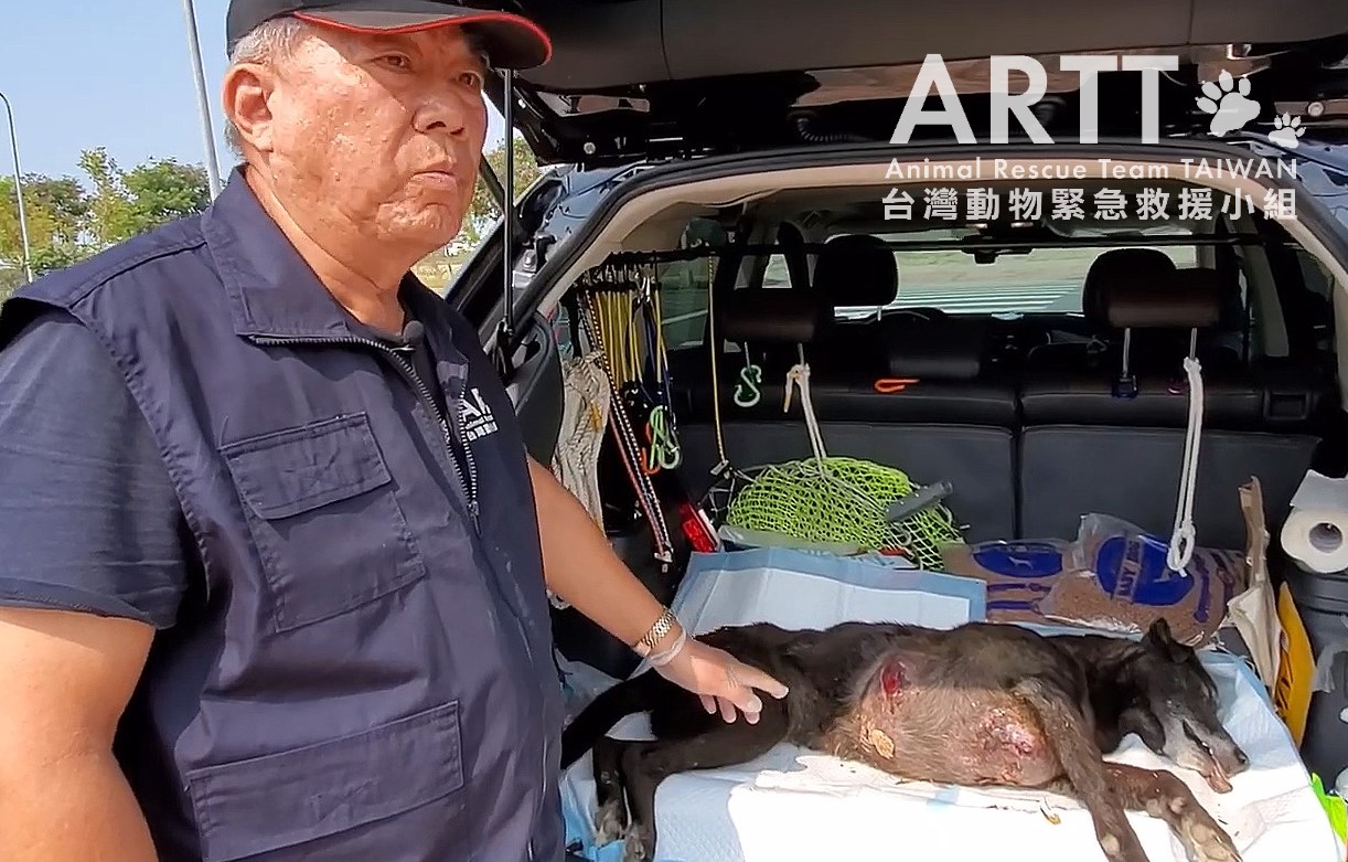 台灣動物緊急救援小組接獲民眾通報,在高雄路竹科學園區內,有一隻黑色流浪犬,胸部掛著巨大腫瘤,在園區道路上行走,模樣相當痛苦;台灣動物緊急救援小組獲報後,大隊長率領多位救援人員會同獸醫師前往營救,順利將這隻身掛巨瘤的流浪狗送往動物醫院治療。