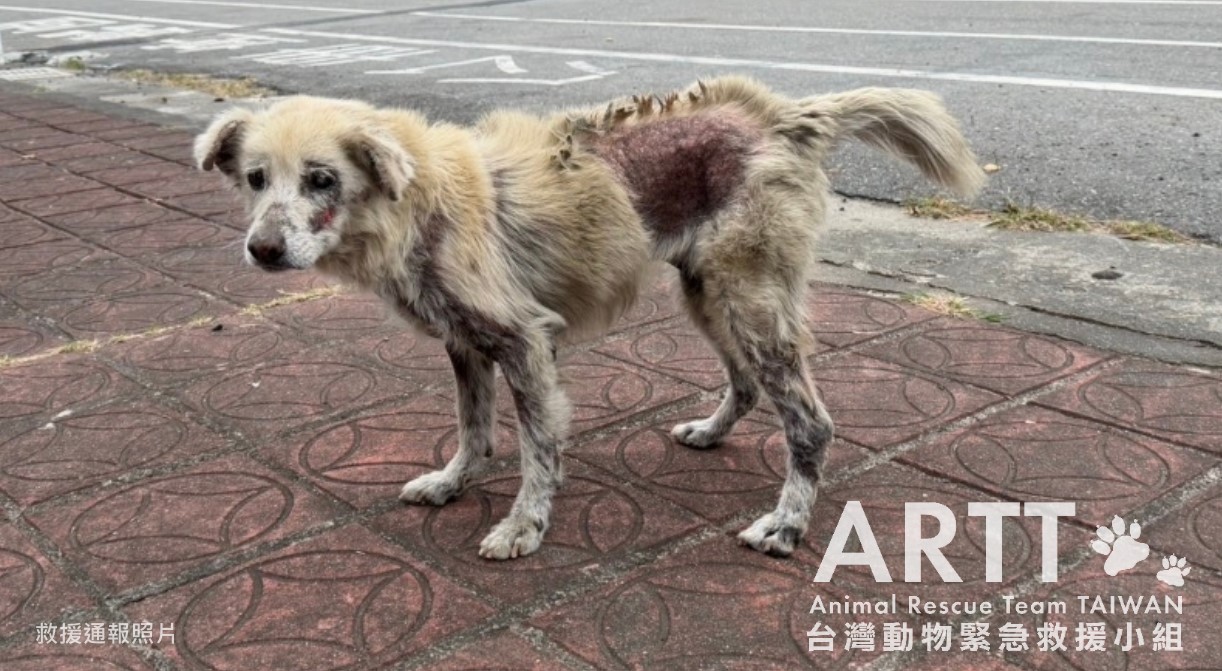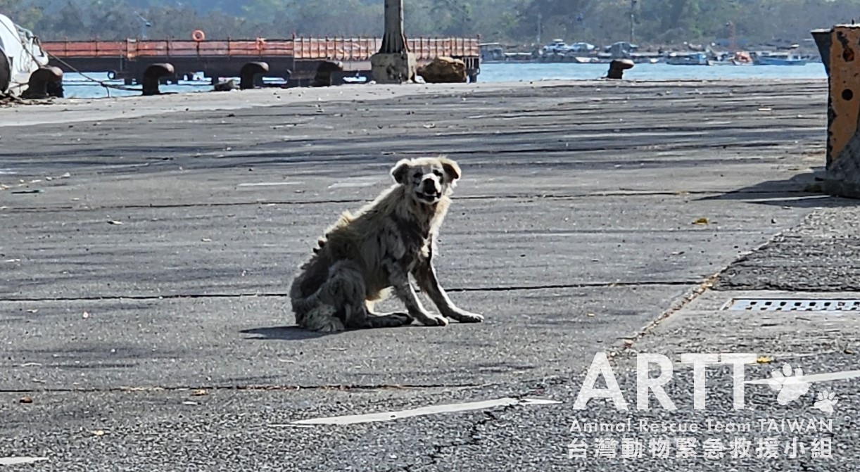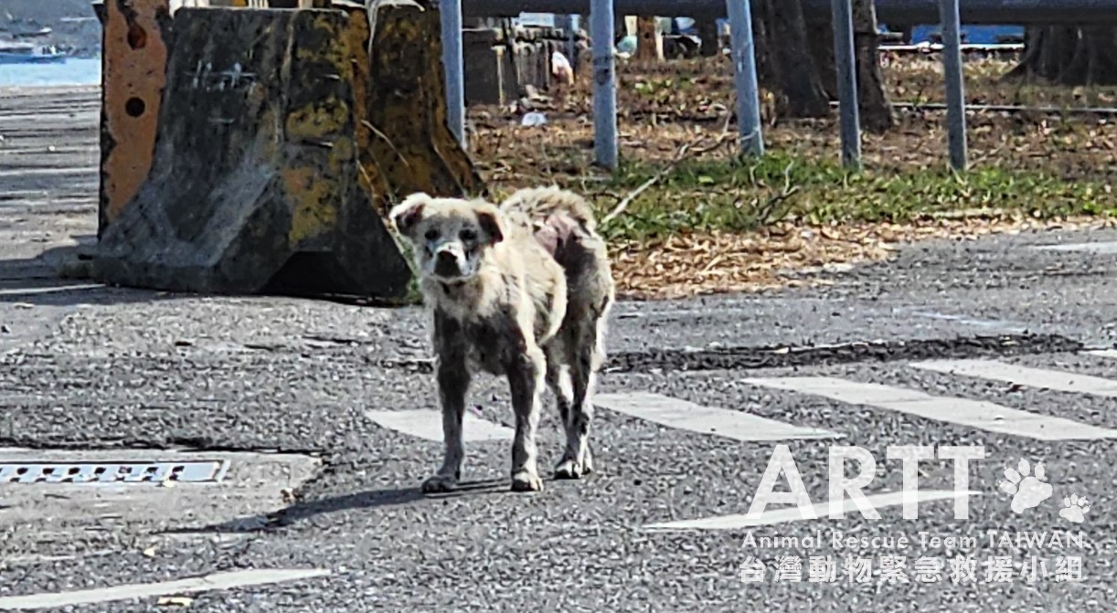 台灣動物緊急救援小組接獲通報前往台南安平港區救援一隻全身嚴重皮膚病的浪犬,救援團隊順利捕捉到病犬後,立即送往動物醫院進行檢查與治療。