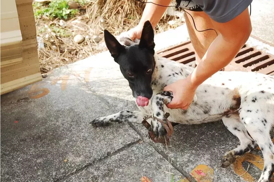 曾被捕獸夾夾斷腿的狗。圖/台灣之心愛護動物協會提供