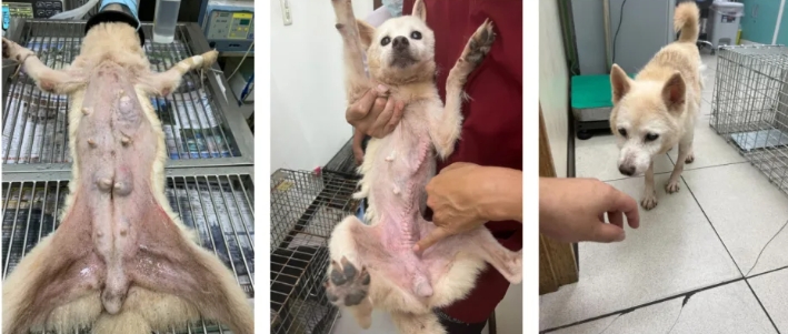 近日協會接手一隻白柴犬,因多處惡性乳腺腫瘤開刀,光醫療費已達一萬七千多元。台灣動物救援協會提供