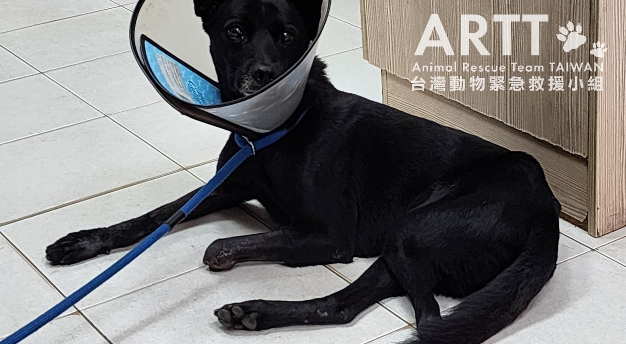 台灣動物緊急救援小組醫療團隊為傷犬進行檢查,傷犬左前肢遭捕獸夾夾斷,皮肉撕裂、骨骼外露。經醫療評估,已無法保留受傷肢體,須進行截肢手術以防止感染惡化並保住性命。完成截肢手術後持續留院觀察治療。