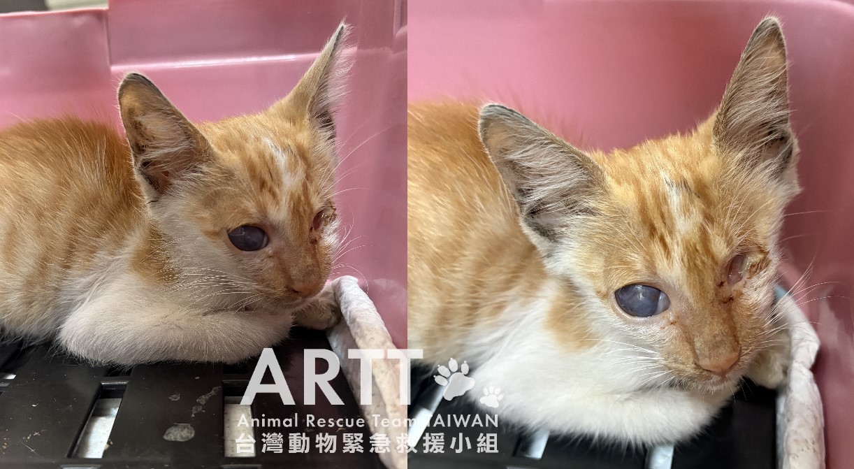 台灣動物緊急救援小組接獲通報,前往台中太平一處空地救援一隻失明小貓。志工順利誘捕貓咪後,安排送往動物醫院進行檢查與治療。